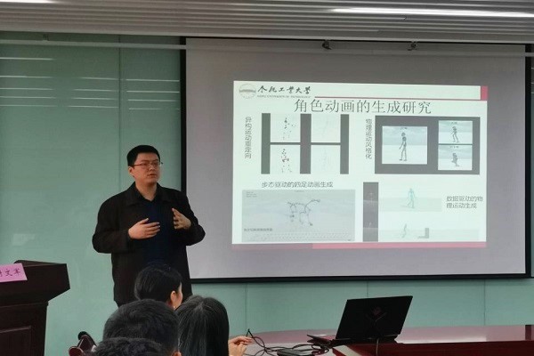 计算机专业本科生一、二年级学生通过自愿报名共计38名学生参与了此次活动。活动现场,实验室的李琳老师和谢文军老师先后进行了宣讲,重点介绍了实验室各项在研项目,深入讲解了包括人工智能深度学习、设备投影、异构运动重定向、物理运动风格化、步态驱动的四足动画生成、数据驱动的物理运动生成等项目,详细地向大家阐述了VCC实验室在将科技成熟运用到现实生活中的各项主题研究。讲解之后,老师与现场同学们进行了互动,老师为每一个同学的问题做出了耐心的解答。
