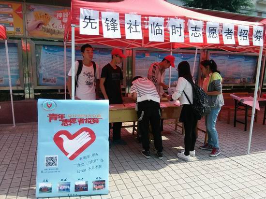 本次招募以现场报名和短信报名的形式展开,旨在为更多的同学们提供一个奉献自己爱心的平台。报名的同学,将经过志愿者大会、培训成为临时志愿者。今后他们将和队员一起,参与到先锋志愿中心的志愿活动中。活动期间,许多同学前往现场咨询报名,得到了在场志愿者的热情解答。最终,活动招募了来自各学院的近一百名同学,壮大了志愿服务的队伍。