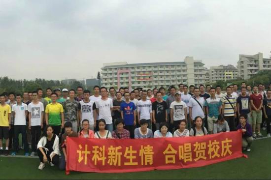 9月25日,新葡萄8883官网AMG官网15级新生在翡翠湖校区西操场上举行了“计科新生情,合唱贺校庆”的合唱校歌活动。计算机科学与技术专业三个班全体同学均参加了这次活动。