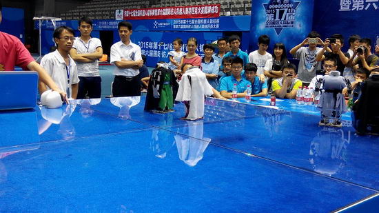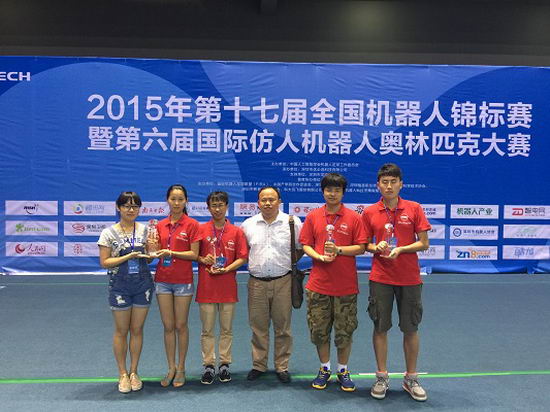 2015年第十七届全国机器人锦标赛暨第六届国际仿人机器人奥林匹克大赛于7月27日-29日在深圳市举行,新葡萄官网HfutEngine代表队5名参赛队员在方宝富副教授的带领下,夺得了仿人机器人点球、服务类机器人捡垃圾比赛2项冠军,获得仿人机器人单人舞蹈和双人舞蹈2项亚军,获得仿人机器人短跑二等奖。推送的机器人小品项目-荆轲刺秦获得大赛的最佳演示奖。蔡鹤皋院士观看了新葡萄官网的机器人比赛并给与了高度评价。这也是新葡萄官网机器人代表队历年来获得的最好成绩。