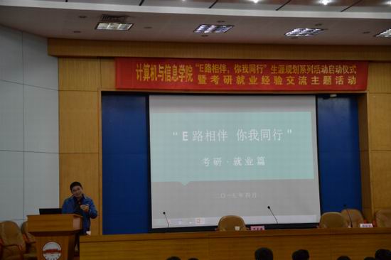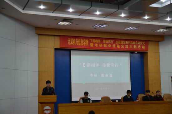 2015年4月8日下午2时30分,新葡萄8883官网AMG官网“E路相伴,你我同行”生涯规划系列活动启动仪式暨考研就业经验交流主题活动在学术会议中心一楼报告厅召开。院相关老师、2011级优秀学生代表以及2012级全体同学出席了本次活动。