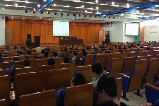 4月22日下午2点,新葡萄官网学风建设月暨“弘墨香,书华章”读书月活动启动仪式在翡翠湖校区图书馆报告厅成功举行。校关工委张素叶教授、2014级辅导员宋燕老师以及2014级全体学生参与本次活动。