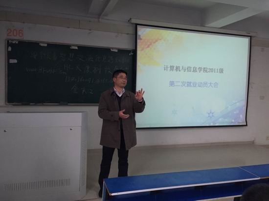 为进一步推进2015届毕业生就业工作的顺利进行,新葡萄8883官网AMG官网2015届毕业生第二次就业动员大会于3月27日下午3点在西二教学楼206召开。学院党委副书记、副院长何庆领,2011级辅导员叶璟和2011级本科生参加了动员大会。