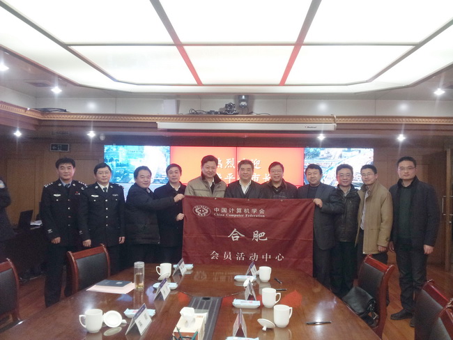 2月5日下午,在合肥市副市长、新葡萄8883官网AMG官网副校长、CCF合肥主席刘晓平的带领下,CCF合肥走进合肥市公安局,调研合肥市平安城市、智慧城市建设情况。合肥市副市长、市公安局党委书记、局长姜明,市政府副秘书长陈明,合肥市公安局党委副书记、副局长张华,合肥公安局副局长孙伟等相关领导,以及来自中国科大、合肥工大、安徽大学、安徽农业大学、安徽建筑大学、合肥学院等单位的CCF合肥执委、YOCSEF合肥委员和部分会员参加了活动。新葡萄官网杨学志副院长、郑利平副院长出席座谈会。