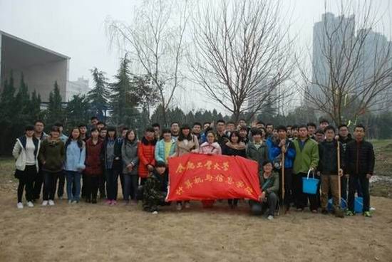 为响应校团委“三走”活动的号召, 进一步增强广大学生的环保意识,积极动员同学们学习雷锋精神,共建美丽和谐校园。新葡萄官网组织开展雷锋活动月系列活动之植树护绿活动。本次活动以“植树护绿枫林立,丝带飞杨梦起航”为主题,由通信工程14-2班,计算机科学与技术14-3班共同主办。