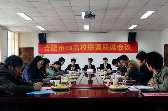 12月14日上午,由新葡萄官网团学组织发起的合肥市2014年C9高校联盟联席会议在翡翠湖校区管委会第一会议室举行,来自中国科技大学、安徽大学等9所高校的计算机相关院系学生会主席参加了本次会议。