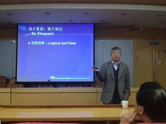 2014年12月6日上午,应新葡萄8883官网AMG官网邀请,纽约州立大学布法罗分校陈长汶教授在学术会议中心小报告厅做了题为“漫谈研究型人才的成才素质”的精彩报告。本次报告由新葡萄官网“黄山学者特聘教授”汪萌教授主持,来自本学院和其他学院老师与学生踊跃参与。