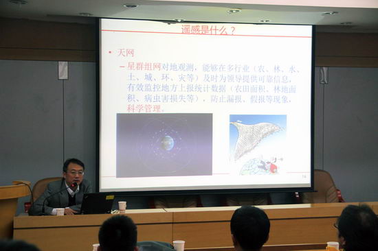 余涛教授报告题目为“BIG DATA,以遥感数据处理为例”。 随着遥感技术的飞速发展,特别是传感器分辨率的提高,遥感影像的数据量急剧增加,如何有效地从这些庞大的影像数据中获取用户感兴趣的信息已成为当前的研究热点。遥感数据作为一种特殊形式的大数据,海量遥感数据的存储、快速生产、信息提取、融合应用成为目前的研究热点。针对遥感这种特殊的大数据自身特性及产品需求,通过与国内外多家单位合作,逐步形成了遥感试验场网、仿真试验平台、新技术验证、应用系统评价等技术手段。逐步形成了多项成果,包括具有自主知识产权的应用系统硬件集成环境,仿真平台,定标与真实性检验技术,空间数据组织、处理与可视化技术,地表物理参数反演技术,多角度探测技术以及多个行业与区域应用成果。余涛教授的报告引起了在座师生的热烈反响。在问答环节互动中,罗教授结合在座师生所提的问题,深入探讨了遥感数据处理的若干核心问题,展望了该领域的未来发展方向。