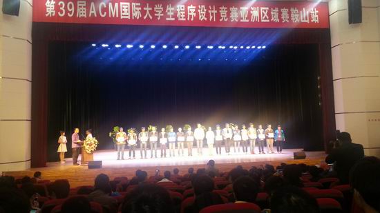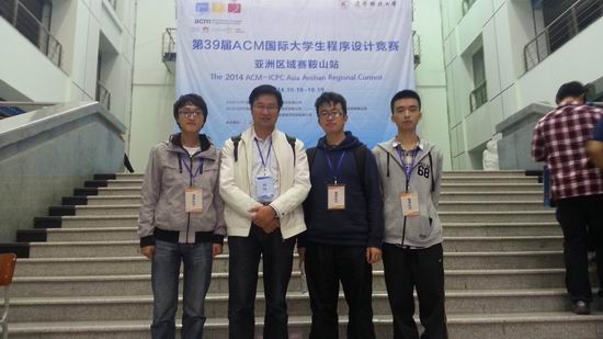 10月18日至19日,第39届ACM国际大学生程序设计竞赛亚洲区域赛鞍山赛区在辽宁科技大学举行。来自新葡萄官网计算机专业12级的吁松同学和来自软件学院12级的段荣、吕冯麟同学组成的代表队参加了此次比赛。他们经过五个小时的激烈奋战,最终顺利解出三道题,摘取铜牌一枚。