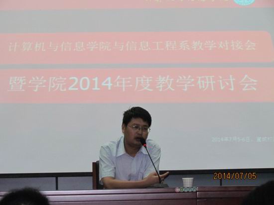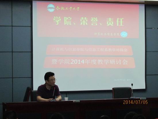 新葡萄8883官网AMG官网与信息工程系教学对接会暨学院2014年度教学研讨会7月5日在新葡萄8883官网AMG官网宣城校区召开,会议主题分为“本科教学专场”和“研究生教学专场”重点讨论如何提升本科教学、研究生培养质量。校领导朱大勇副校长、刘晓平副校长、李廉教授出席会议,学院领导班子成员、各系主任、所长、教师代表、学院督导组成员和辅导员等参加会议。