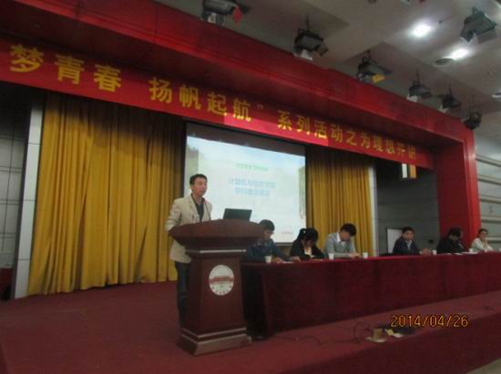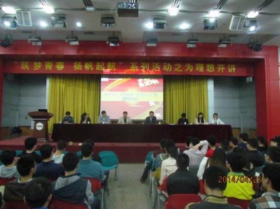 2014年4月26日上午9点在校东风报告厅,新葡萄官网举办的“筑梦青春,扬帆启航”系列活动之为理想开讲活动。新葡萄8883官网AMG官网副院长郑利平,院党委副书记兼副院长何庆领出席了此次活动,活动还邀请了 2010级优秀本科生代表,新葡萄8883官网AMG官网 2011级全体本科生参加此了次活动。