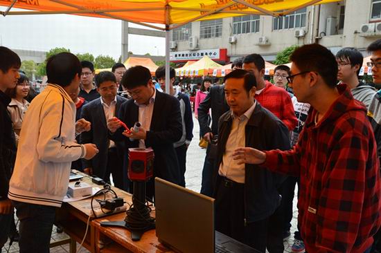 本次科技节在“e路相伴,科技同行”的大背景下,以“触发青春灵感,点亮科技生活”为主题,从4月13日开幕式至5月31日闭幕式,历时一个半月,在此期间,将举办囊括参观体验类、比赛竞技类、科技服务类共计11余项活动,举办科技讲座共计10余场,全面提升广大同学的科技素养与动手实践能力。开幕式上,合肥市科协主席金维平致辞,在充分肯定了科技节的内涵的基础上,鼓励同学们积极参与到科技创新、科技实践当中去,努力提升自己的科学素养与创新能力,并预祝本次科技节取得圆满成功。随后,校团委书记陈文恩指出:自主创新能力成为国家竞争力的核心,培养学生科技创新素质是学校人才培养目标的重要内容,我们要认真总结经验,不断开拓创新,坚持不懈地办好一年一度的大学生科技文化节。希望同学们能够借助科技节这个平台,善于思考、勇于创新、不断进取,更好地投入到专业学习和科技创新工作中,促进资源整合,展示先进科技,推动科技创新。学院科技与创新协会主席吴晶晶详细介绍了此次科技节的相关情况。最后,嘉宾寄语科技节并合影留念。