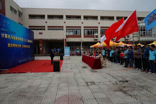 为了搭建科技创新与自主创新平台,促进科技素质的提高,反哺学风建设,4月13日上午,合工大新葡萄8883官网AMG官网在翡翠湖校区一食堂广场隆重举行科技节系列活动开幕式。市科协主席金维平,校团委书记陈文恩,党委学工部副部长葛万锋,新葡萄8883官网AMG官网党委副书记何庆领以及2013级全体同学出席了此次开幕式。