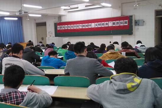 3月30日晚,新葡萄8883官网AMG官网“E路相伴,文明修身”素质拓展于翡翠湖校区成功举行。2013级全体学生参加了本次活动。