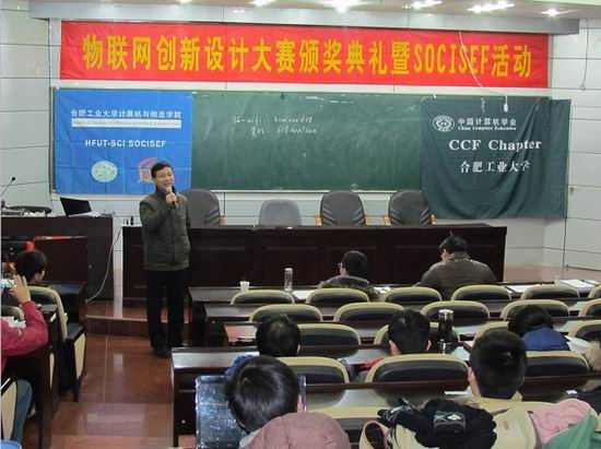 大赛经过初审、预赛和决赛三个阶段,最终有6个作品进入决赛,这6个作品涵盖了物联网技术在智能工业、智能汽车、智能交通、智能物流、生命科学、智能家居等领域的典型应用案例。参赛队员精彩的讲解和生动的实物展示也给在场同学留下了深刻的印象。经过激烈的比赛和评委认真的评选,由莫家和、王康康、陈建辉、刘磊等同学完成的参赛作品《设备、环境和能源监控系统》获得大赛一等奖。