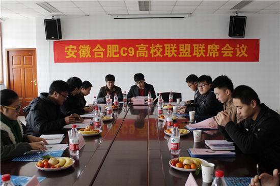 12月15日上午9时,由新葡萄8883官网AMG官网倡议发起的安徽省合肥市2013年C9高校联盟联席会议在翡翠湖校区管委会第一会议室举行,来自中国科技大学、安徽大学等九所合肥市高校的计算机相关院系学生会主席出席本次会议。