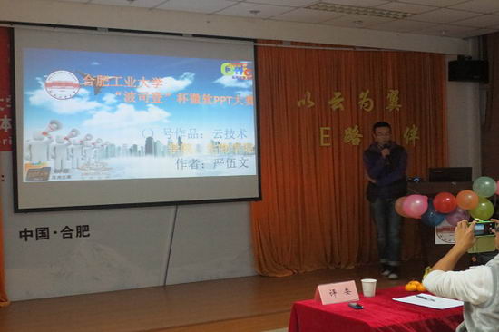 此次大赛围绕“以云为翼,E路相伴”的主题,吸引了来自于各学院的300多名同学报名参赛,通过长达两个月的日常培训与层层初选,共遴选出10份优秀office作品参与决赛。决赛现场,各位参赛选手都将精湛的PPT制作技术与丰富的想象力、创造力相结合,用自己全新独特的视角生动的描绘主题,有对环境热点的关注,有对轻轻的流露与表达,也有对未来的职业展望,优秀的作品以及精彩的答辩使现场观众耳目一新。最终来自新葡萄8883官网AMG官网的王晓怡同学夺得桂冠,生物与食品工程学院的谢礼伟同学获得二等奖。