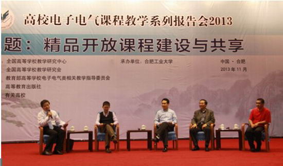 上海交通大学郑益慧教授,天津大学王萍教授,西安电子大学郭宝龙教授,长安大学汪贵平教授分别作了MOOCs环境下“混合式”教学模式的思考与探索;新形势下的电工学课程改革及教学资源建设;电子信息类精品开放课程建设与教学方法研究;运用系统方法科学构建自动化专业卓越工程师培养创新实践教学体系报告,随后于歆杰,陈江,郑益慧,郭宝龙等几位专家又对代表们提出的问题进行了深入的交流。