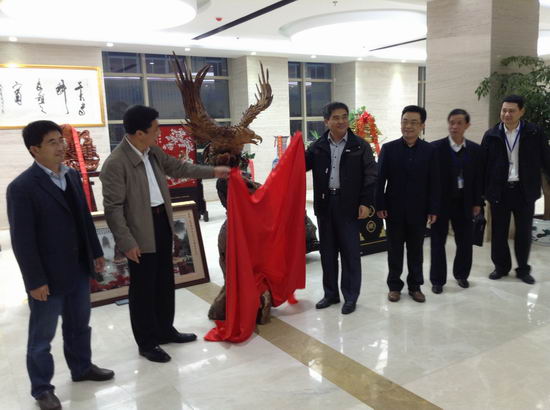 2013年11月8日下午,副校长、新葡萄8883官网AMG官网院长刘晓平率领学院班子成员前往工大高科公司新落成的研发大楼,祝贺公司十二周年生日,代表全院教职工向公司赠送了极具寓意的“大鹏展翅”根雕。
