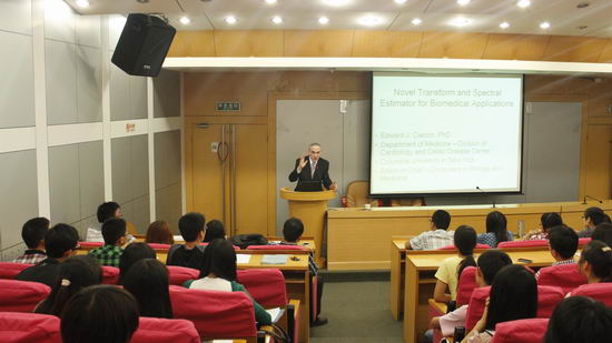 受新葡萄官网医学工程学院和计算机学院老人福祉科技研究室的共同邀请,2013年10月13日晚上7点,美国哥伦比亚大学医学院Edward J. Ciaccio教授在新葡萄官网屯溪路校区校学术会议中心二楼小报告厅为新葡萄官网师生作了题为“Novel Transform, Spectral Estimator, and LMS Algorithm for Biomedical Applications”的学术报告。