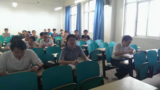 学院于7月20日下午对全院2013年申请批准的70项学生创新训练项目进行开题审查。学院创新创业领导小组本着方便学生、服务学生、不影响正常课堂教学的原则,把本次开题审查安排在周六下午的翡翠湖校区进行。本次开题审查分三个大组进行,第一组:齐美彬、张勇、杨兴明在翡翠湖校区十教301教室负责电子专业学生的开题审查;第二组:丁志中、孙锐、王禄生在翡翠湖校区十教302教室负责通信专业学生的开题审查;第三组:陈田、樊玉琪、徐娟在翡翠湖校区十教303教室负责计算机和物联网专业学生的开题审查。老师们顶着酷暑经过近3个小时紧张而有序的答辩之后,所有项目的开题审查圆满结束,对于方案有问题的,答辩老师当场指出并要求其限期整改和完善。