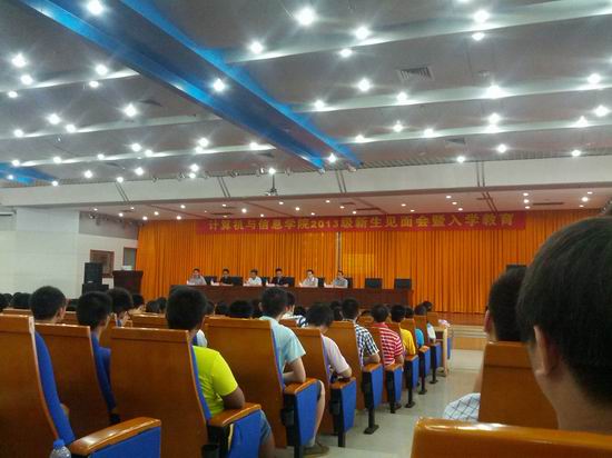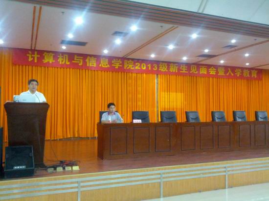 会议伊始,学院副院长杨学志代表学院为2013级新生致欢迎词,并从学院师资、科研、成果、文化等方面概括介绍了学院的总体情况。随后,通信系主任丁志中,计算机系主任路强以及学院实验中心副主任韦康分别就专业发展、前景方向、特色建设、师资队伍、教学计划、基地设置等具体情况向全体2013级新生进行全方面的讲解。最后,新葡萄8883官网AMG官网副校长、学院院长刘晓平教授寄语2013级新生,鼓励全体同学在学习生活中变“被动”为“主动”,合理分配时间,多思考,勤学习。