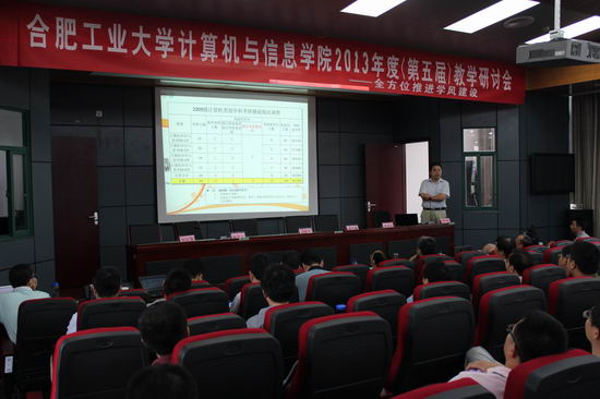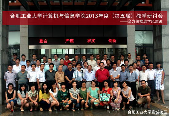 2013年7月6日至7日,新葡萄8883官网AMG官网在新葡萄官网宣城校区召开了2013年度(第五届)教学研讨会,会议主题为“全方位推进学风建设”。本科教学专场主要围绕“加强课程组建设-迎接宣城校区的教学任务”、“提升毕业设计质量管理-培养合格大学生”、“落实本科生导师制-提高培养质量”三个方面展开;研究生教学专场主要围绕“研究生课程设置修订”、“研究生培养相关规则的修订”、“提高研究生招生及培养质量的措施”、“计算机科学与技术专业自主命题”展开。副校长刘晓平、宣城校区管委会副主任胡学钢、原副校长韩江洪、院党委书记蒋建国、副书记何庆领、副院长杨学志、副院长郑利平、院长助理王伟、各系所、中心负责人、责任教授、学院教学督导组成员、教师代表、教学行政办公室人员共60余人参加了本次会议。