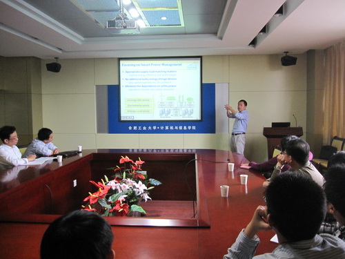 应新葡萄8883官网AMG官网邀请,美国公立常春藤名校佛罗里达大学电子与计算机工程系智能计算机体系结构设计研究室主任、中国海外杰出青年科学基金获得者李涛博士,于2013年5月10日访问新葡萄官网。李涛博士在学院逸夫楼408会议室做了题为“Towards Renewable Energy Powered Sustainable and High-Performance Cloud Datacenters”的学术报告。新葡萄8883官网AMG官网副院长杨学志教授主持了此次学术报告。新葡萄8883官网AMG官网、电子科学与应用物理学院相关师生聆听了报告。