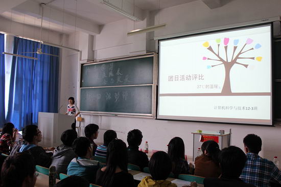 答辩过程中,各团支部通过PPT演讲、活动视频的形式展示在环境保护、红色学习、体育锻炼、科技知识等方面的风采。部分团支部还联系中南大学、美国俄亥俄州立大学大学等高校联合开展团日活动。经过近2个小时的角逐,共产生了6个奖项,其中计算机科学与技术12-3班团支部荣获一等奖。