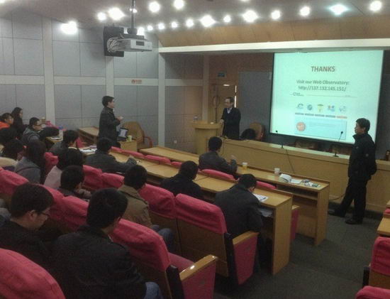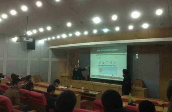 应新葡萄8883官网AMG官网邀请,2013年3月26日上午,新加坡国立大学教授蔡达城在校学术会议中心报告厅做了题为“Live Social Observatory: A platform for social media research”的学术报告。报告会由蒋建国书记主持,杨学志副院长、信号所与软件所教师以及学院研究生、本科生参加了报告会。