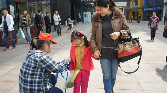 当日,志愿者经过两个小时的细心准备后,省内知名书画家、书法家拿出墨宝在现场不辞辛苦的挥毫泼墨为孤独症儿童康复教育筹集经费,同时诸多赞助方对产品进行义卖,所得善款均捐赠给自闭症儿童。我们的志愿者们也一一为路人宣传本次活动的意义,为他们系上蓝丝带,希望他们了解自闭症,关心自闭症儿童,为此献出一份爱心。