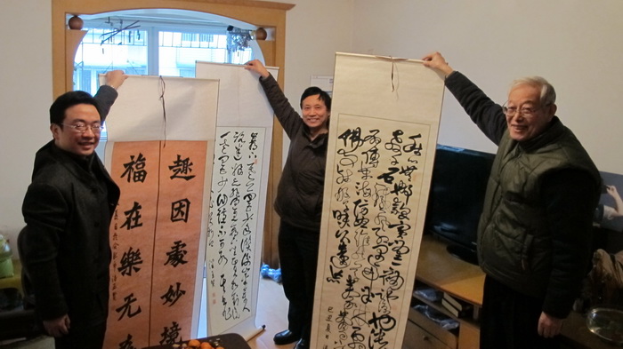 在老先生家中,学院领导兴致勃勃地报告了学院过去一年里在人才引进、学科建设、教学科研以及行政工会等方面所取得的新成就、新成绩,当听到“国家基金喜获15项名列全校第一”、“软件工程博士后流动站获批”、“荣获安徽省先进基层党委称号”时,老同志们喜笑颜开、感慨万分,畅叙着对母校、母院的无限深情,张奠成教授展示了自己家庭中的网络新环境,钱源诚教授嘱咐科研要走精深路线并发挥学院集成优势,潘孟贤教授还拿出自己在老年大学里的书法作品从魏碑谈到狂草。