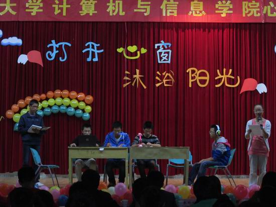 此次比赛中各参赛节目力求贴近大学校园生活,演员们表演十分投入。参赛9个节目从亲情、爱情、人际关系等各个方面不同角度展现了当代大学生在生活中各种心理矛盾,引人深思。其中,计算机科学与技术12级3班的推荐节目《我的天空》更是让评委及观众流下了最真挚泪水,并最终荣获一等奖。