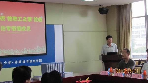 学院院长刘晓平教授代表学院致欢迎词并简要介绍新葡萄官网的有关情况,随后,校工会主席王建新代表校工会和专家考评组发表简短讲话,学院工会主席何平副院长就“教职工之家”建设和新葡萄官网工会工作分9个方面向考评组作了详细汇报。