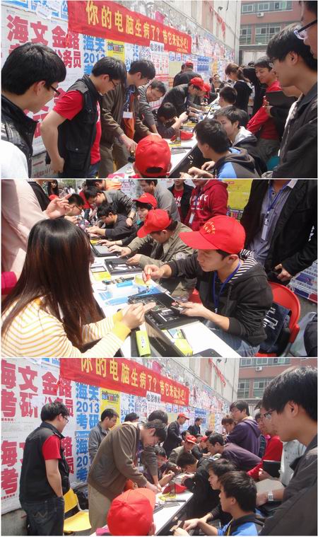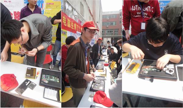 维修活动刚一开始,就有不少同学围在服务站询问关于电脑使用和维护的知识;很多同学把电脑带到现场,请服务站队员边操作边讲解,随着前来咨询的人数逐渐增多,维护站的同学们忙得不亦乐乎。一位来维修电脑的同学说:“自己对电脑维修一窍不通,平常有个小毛病就得带着沉重的电脑跑很远去修,花了不少冤枉钱。这次义务维修提供了不少帮助,真希望学校多举办这样的活动。”