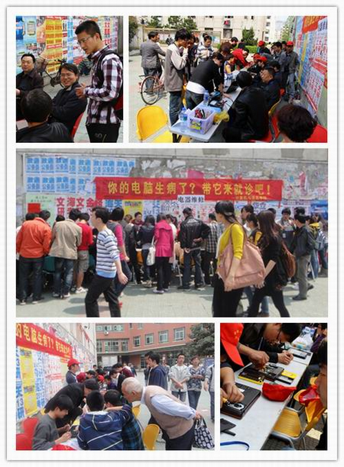 “你的电脑生病了吗?带它来就诊吧!”4月7、8日,在新葡萄8883官网AMG官网党委、团委指导下,旨着学习雷锋,创先争优,服务师生的精神,新葡萄8883官网AMG官网教师党员、学生党员等于屯溪路校区食堂广场开展“学雷锋义务维修电脑电器服务校园”活动。