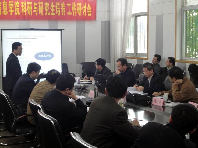 研讨会上,杨学志副院长首先通报了学院2011年度科研目标任务完成情况,对学院国家自然科学基金项目的申报工作进行了总结,并就重大科研项目的突破做了抛砖引玉的发言,同时,杨院长还回顾了年度研究生培养工作,并指出了新形势下此项工作面临的问题。随后高隽教授作为导师代表介绍了自己在科研和研究生培养方面的经验,指出要打造大团队,承担大项目,培养拔尖青年国际人才,在新形势下不仅要拿到国家自然科学基金项目,更应做好,出大成果。另一位导师代表胡学钢教授从研究生的培养目标、培养阶段、课题组的建设、氛围的营造、教研相长等方面分享自己的感受和体会。
