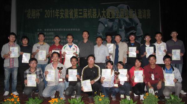 “凌翔杯”2011年安徽省第三届机器人大赛暨全国机器人邀请赛于2011年9月23日-25日在黄山学院举行。该项比赛设有仿真2D、仿真3D、机器人救援仿真比赛、MSRS Nao仿真比赛、仿人机器人舞蹈比赛、家用机器人仿真比赛(命令语言)和家用机器人仿真比赛(自然语言)共7个比赛项目及机器人爬楼梯、机器人灭火、机器人擂台赛等3个项目的表演赛。来自新葡萄8883官网AMG官网、安徽大学、安徽师范大学、河海大学文天学院、宁波工程学院、安徽财经大学、安徽工业大学、安徽理工大学、安徽工程大学、安徽建筑工程学院及黄山学院等16所学校的60支大学生代表队参加了本次比赛。新葡萄官网代表队20多名队员在王浩教授、方宝富、方帅、姚宏亮老师的带领下,派出7支参赛队伍参加其中的5个正式项目比赛项目及1个表演项目,取得2个冠军,1个亚军,共获得1项最佳表演奖、2项一等奖,2项二等奖,2项三等奖的优异成绩。