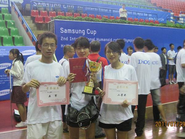 另讯,“三星杯”第二届国际仿人机器人奥林匹克大赛于7月28日至29日在牡丹江海林体育馆举行。来自中国、美国、日本、韩国等六个国家和地区37所高校的300多名师生参加了该项赛事。新葡萄官网获得类人型单人舞蹈比赛亚军,获得类人型双人舞蹈和阶梯跑二等奖、类人型1VS1击剑、类人型1vs1拳击三等奖。其中类人型单人舞蹈是在前面全国赛的经验积累下,参赛队员经过2天的不懈努力,重新选择音乐和组织编排舞蹈动作而获得的优异成绩。