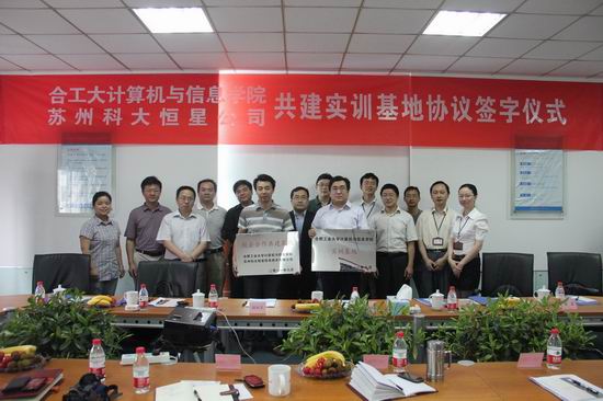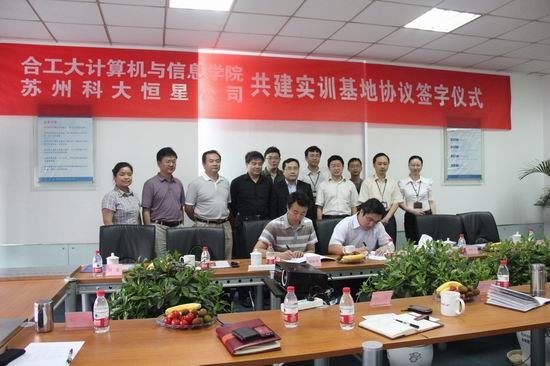 签字和授牌仪式结束后,双方就教学实训基地的建设、学生实训成绩的认定、项目合作和基地管理机构的设置等方面进行了广泛而深入的交流。双方一致认为,教学实训基地的建立有利于学生实践能力、发展能力和创新能力的培养,对于学校实践教学改革和企业引进高层次人才都具有重要而深远的意义。会谈结束后,在苏州科大恒星公司王子华副总经理的陪同下,刘晓平院长一行参观了科大恒星公司,并听取了相关情况的介绍。