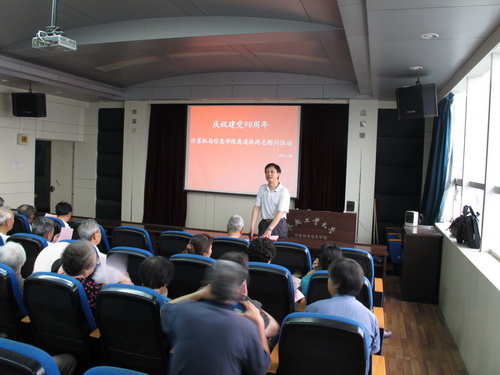 根据学院领导班子会议精神,七一前夕,新葡萄8883官网AMG官网于2011年6月24日上午9:30分在逸夫楼1206会议室举行庆祝建党90周年离退休职工慰问活动,80多名离退休职工出席慰问活动,蒋建国书记代表学院致辞,向各位离退休职工介绍了学院的近期发展,送去了七一前夕党的亲切问候。慰问活动期间,大家一起观赏了《建国大业》,学院党政领导还和大家一起共进午餐,祝老同志们身体健康,祝我们的祖国更加辉煌,图片报道。