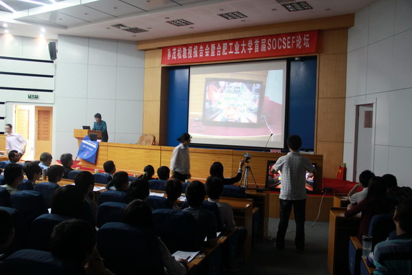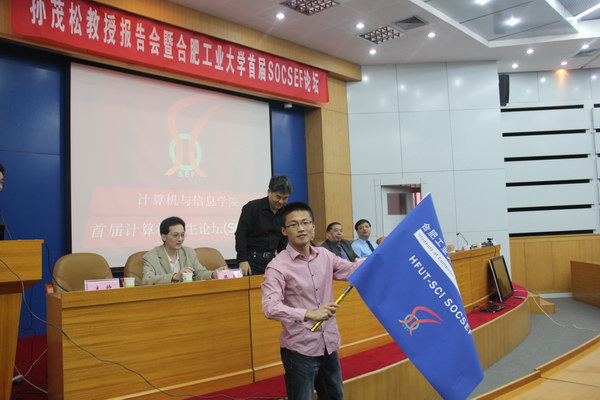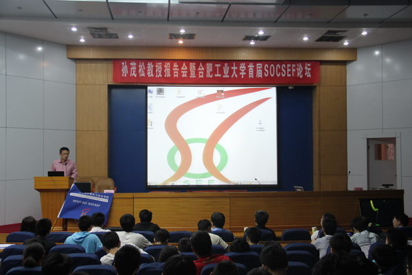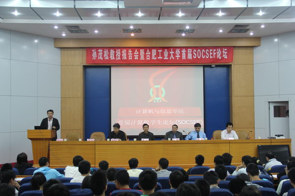 首届SOCSEF于5月27日上午8:00在校学术交流中心一楼大报告厅举行。新葡萄8883官网AMG官网副校长洪天求教授、清华大学计算机系党委书记孙茂松教授、CCF YOCSEF合肥分论坛首任副主席合肥寰景公司总经理陈拥权、新葡萄8883官网AMG官网蒋建国书记、刘晓平院长、何庆领副书记、郑利平副院长、王伟院长助理和路强所长等参加了论坛。整项活动由郑利平副院长主持,首先清华大学孙茂松教授向新葡萄官网计算机、信安专业08级本科生进行一场学术报告,作为本次论坛的特邀报告。然后计算机08-1班自主组织学生论坛,全体计算机、信安专业08级本科生参加讨论。