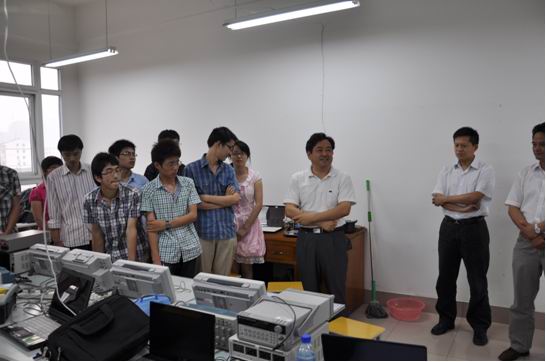 电子信息创新基地筹建得到了合肥新普仪测科技有限公司大力支持,公司给基地提供近二十五万元的高端仪器设备供同学们使用,并且承诺和电子信息创新基地进行长期深入的合作,王董事长结合自己艰苦创业的经历,对同学对同学们提出几点建议:一、在学校一定要学会自己的专业知识;二、一定要加强实践动手能力的培养,不能仅仅停留在理论上或者说书本上;三、在认真准备的前提下,敢于大胆的实践创新。四、懂得回馈社会。