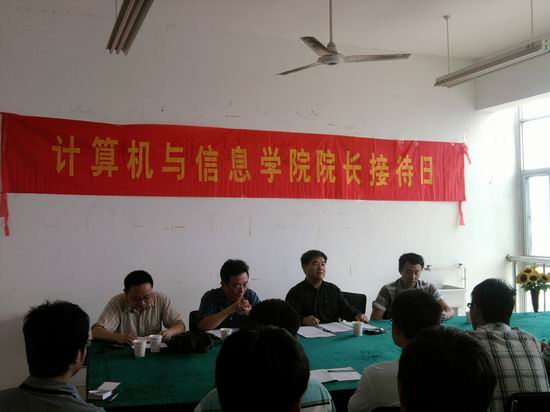2011年6月3日上午十点,新葡萄8883官网AMG官网院长接待日在翡翠湖校区综合楼307会议室举行,刘晓平院长、杨学志副院长、郑利平副院长、计算机软件与理论研究所邵堃所长及新区学生代表出席了接待日。